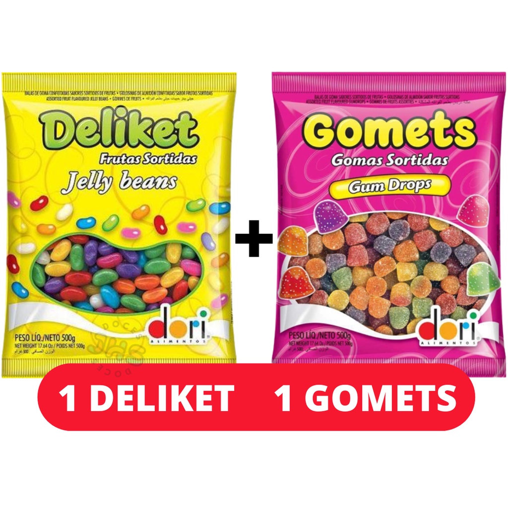 Kit 1 Bala Gomets 1 Bala Deliket Goma 500g jujuba Sortida