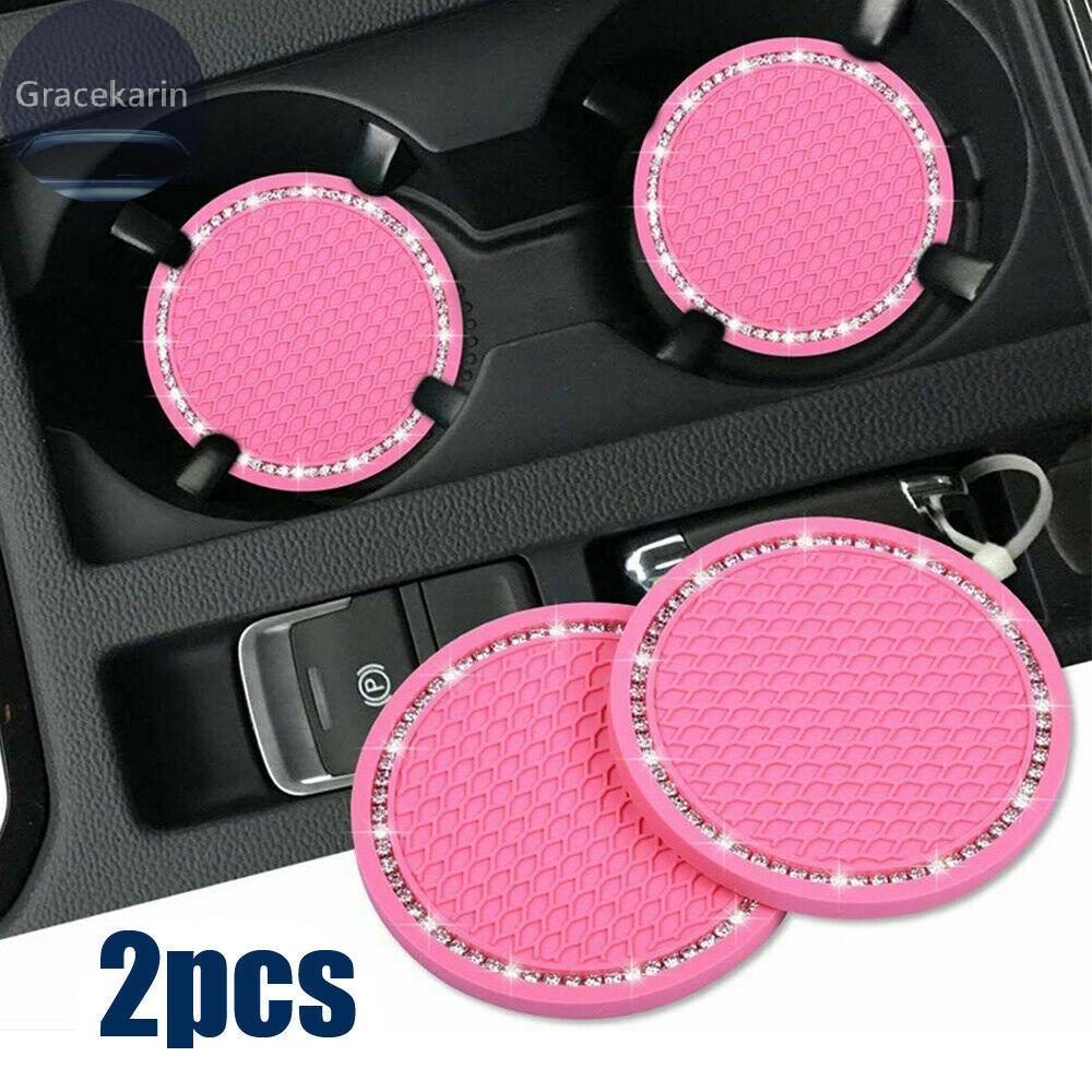 Almofada Porta-Copos Pink Rhinestones Universal 2pcs Conjunto De Acessórios Auto Carro