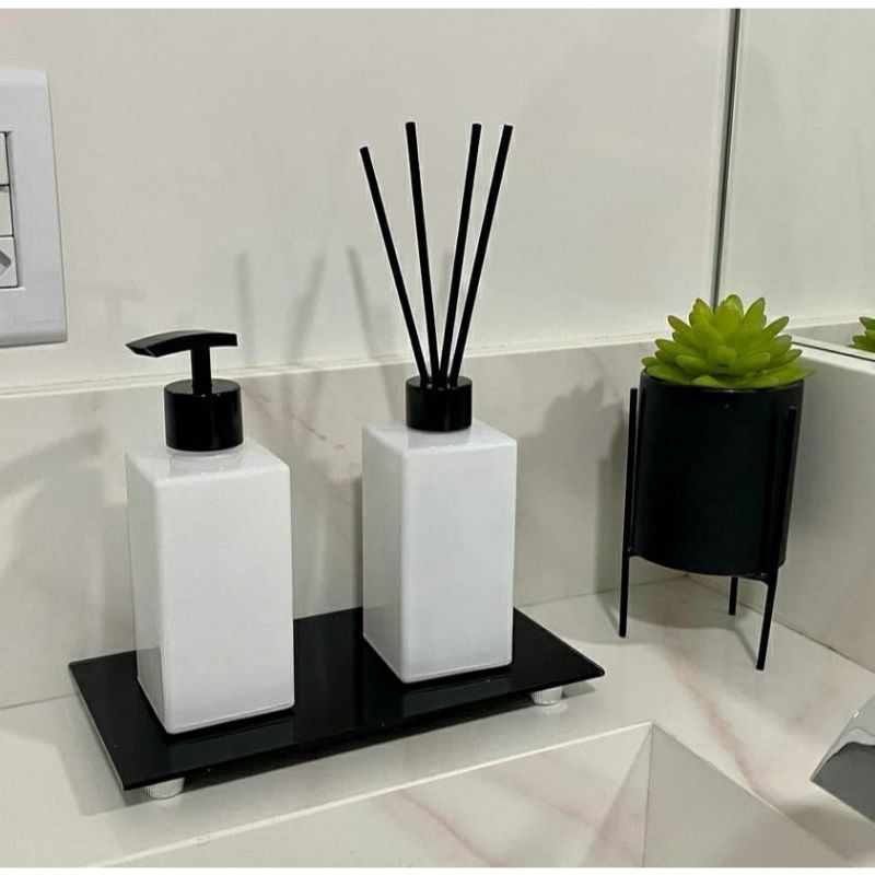 Kit Lavabo Moderno c/ 3 Peças Preto Fosco Difusor Aromatizador e Saboneteira Banheiro Sala Escritório