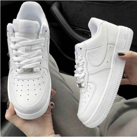 Tênis Air Force 1 de COURO Exclusivo Todo Branco Promoção Unisex Masculino e Feminino Preço Baixo 70% OFF