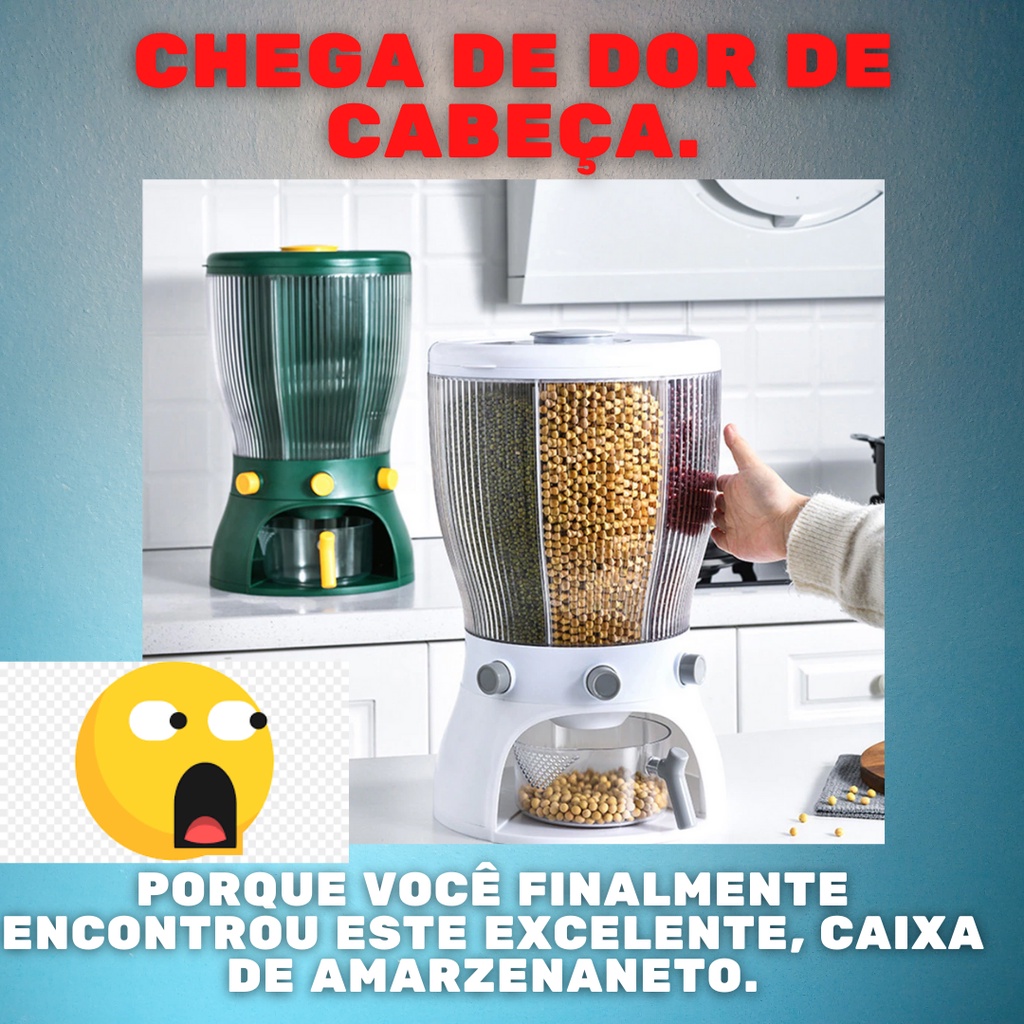 Dispenser Giratorio p Cereais Graos Alimentos c 6 Divisorias à prova d'águagirar Compartimento do Balde de Arroz Caixa de Arroz Selada à Prova de Umidade à Prova de Insetos Caixa de Arroz Multifuncional de Cozinha Tanque de Arroz Ro