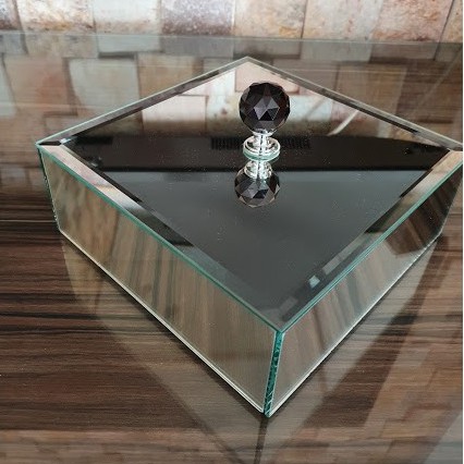 Caixa Império tamanho P espelho prata e bisotê com puxador de cristal