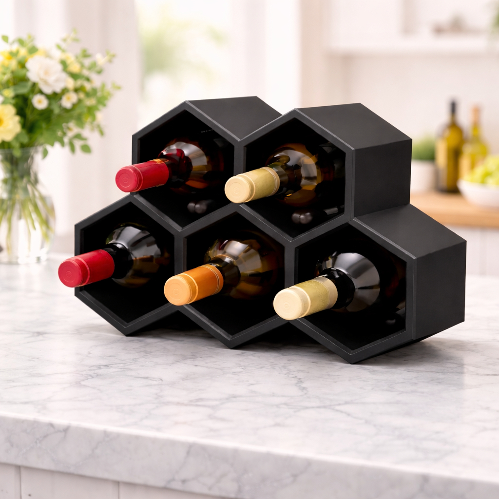 Adega De Mesa Porta Vinho Colmeia Para 5 Garrafas Suporte