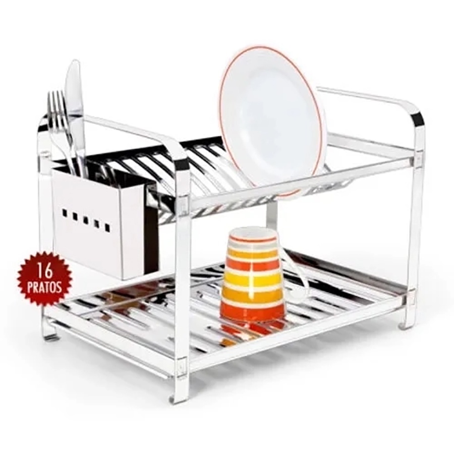 Escorredor De Louça Inox 16 Pratos Inox Não Enferruja Pratos copos