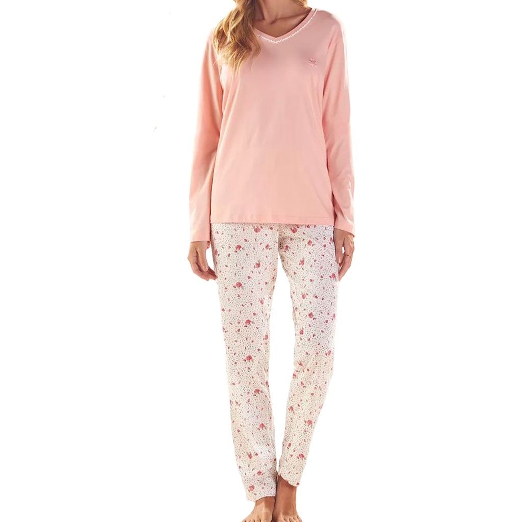 pijama feminino manga longa e calça adulto de malha pv excelente toque vestido para uma otima noite de sono