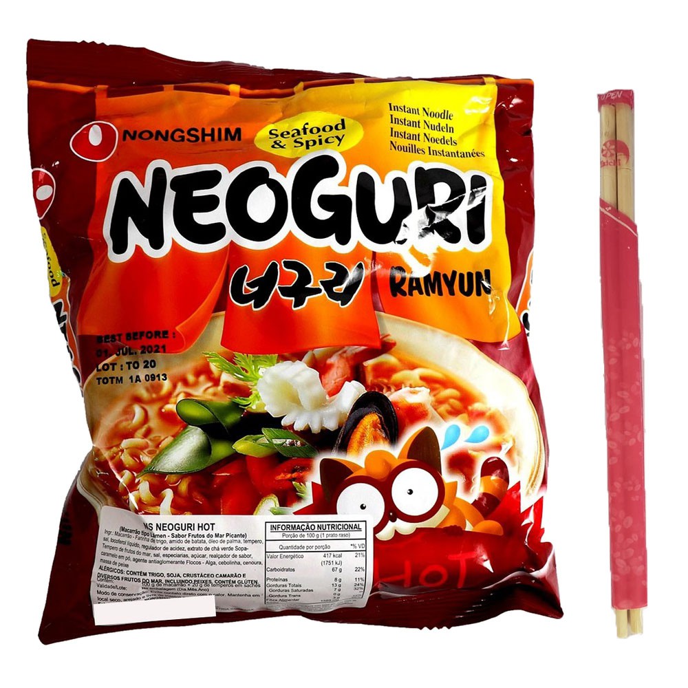 Lamen Coreano Frutos do Mar Neoguri Hot Nongshim 120g + Hashi - Three Foods Distribuidora