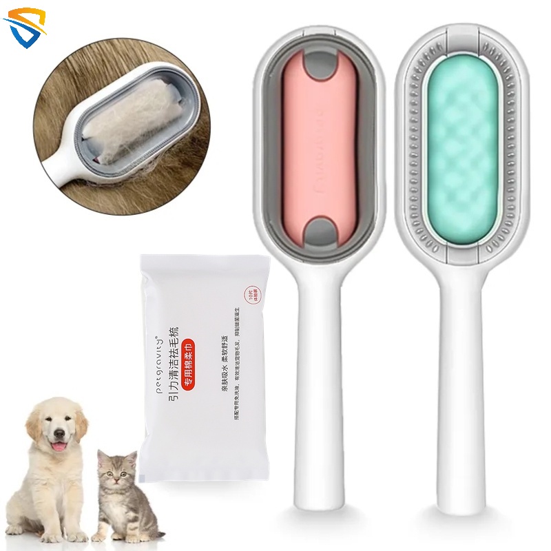 Escova Multifuncional De Dupla Face Para Depilação De Pêlos Cães De Gato Pente Com Toalhetes Kitten Brush
