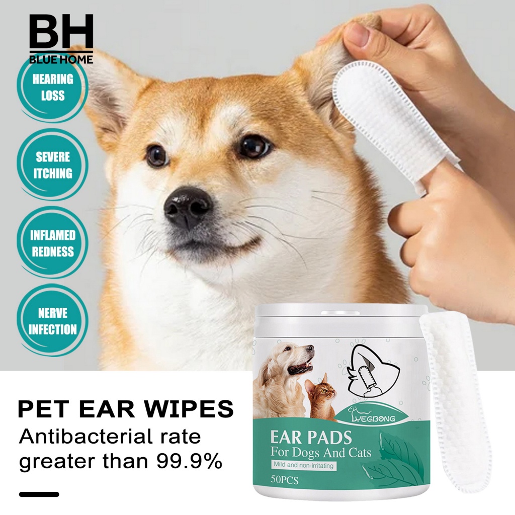 bluehome Pet Solução De Limpeza De Orelha Calmante Limpador De Cachorro 50pcs Suave Para Remoção Eficaz De Cera De Ouvido Melhora Dos Toalhetes Auditivos Com Tampa De Dedo