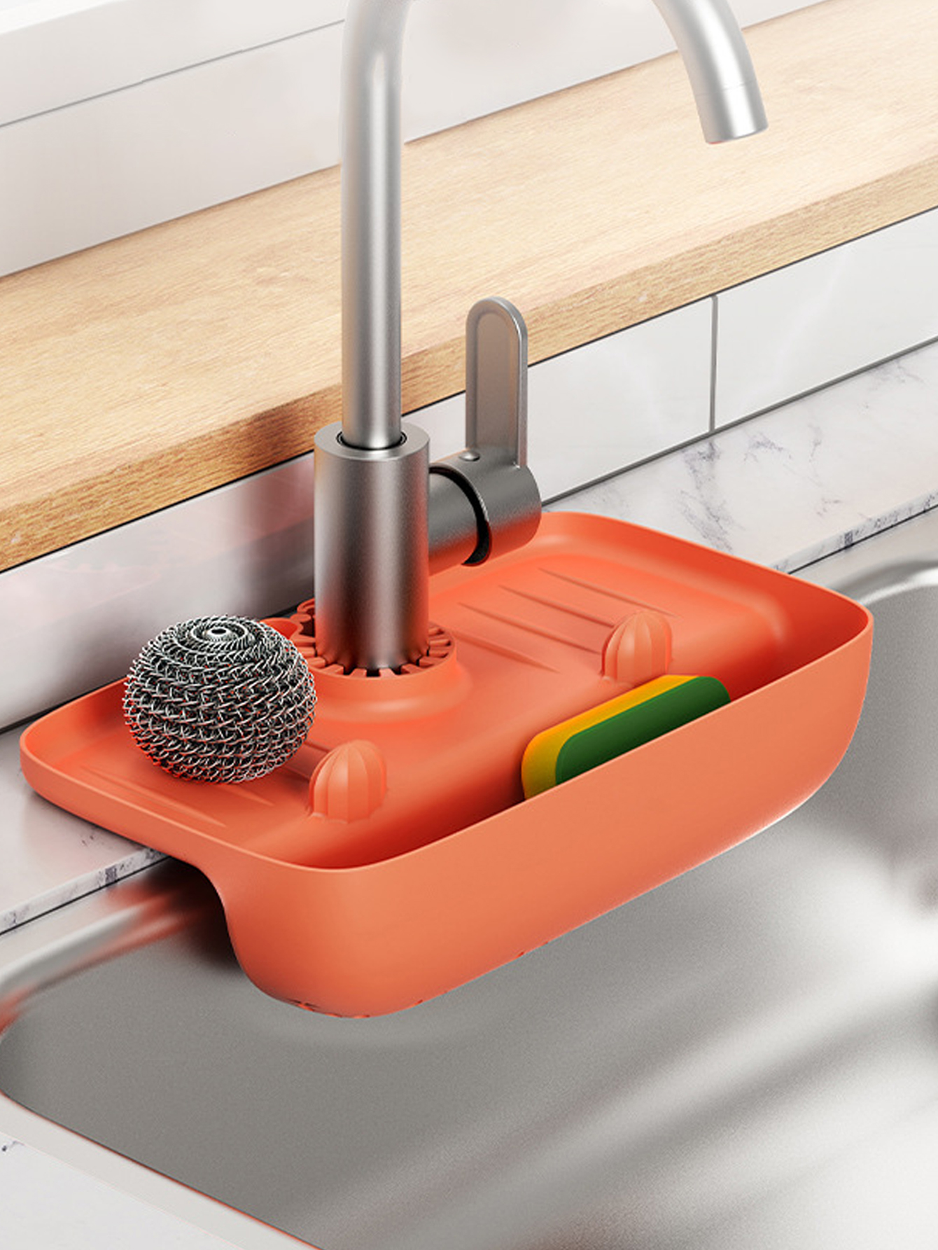 1 Peça De Torneira À Prova De Respingos Tapete De Drenagem Pia Antiderrapante Bancada Toalhetes De Cozinha Esponja Organizador