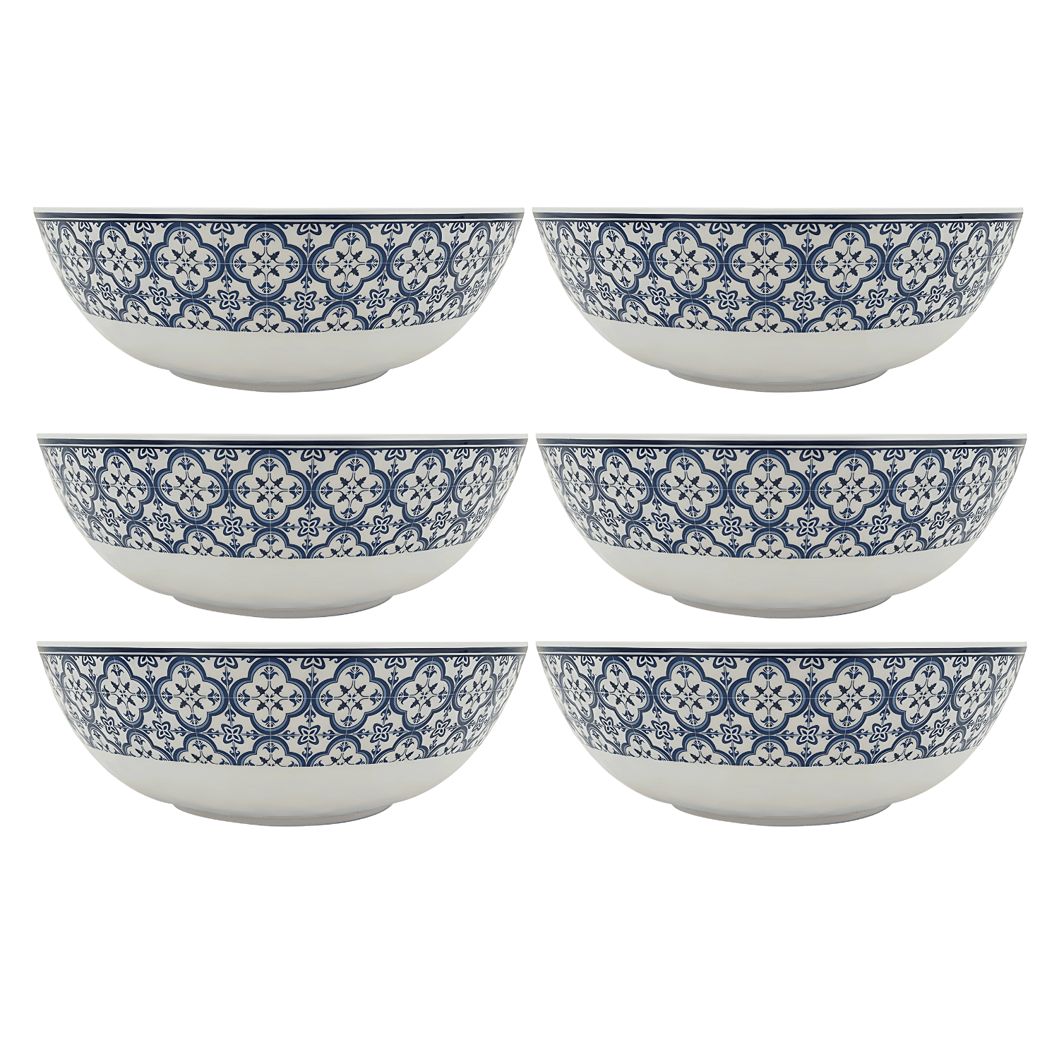 Kit 6 Bowl Tigela Cumbuca Vasilha Saladeira 19cm Melamina Salada Azulejo Salik