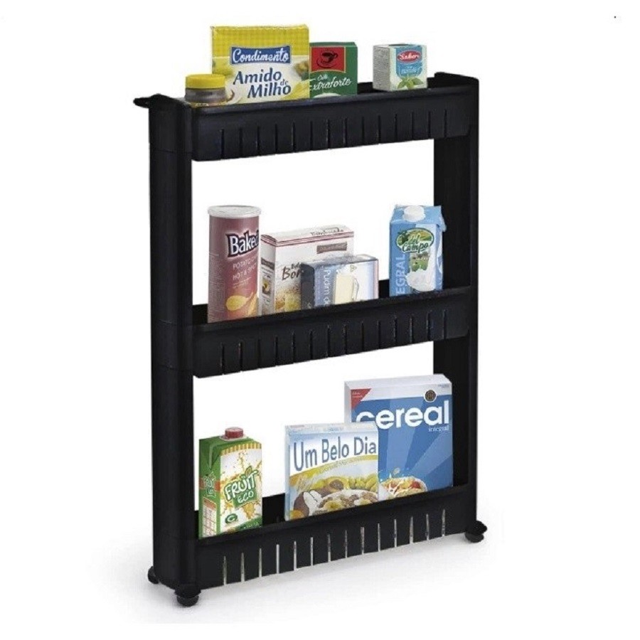 Armário Multiuso Com Rodinhas Organizador de Cozinha e Lavanderia - PRETO Escolha a Quantidade