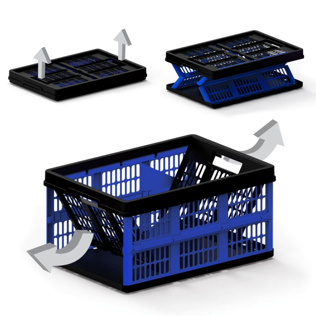Caixa Organizadora Dobrável Multiuso Cesto 45 Litros Grande Azul Desmontável Empilhável Abre Fecha