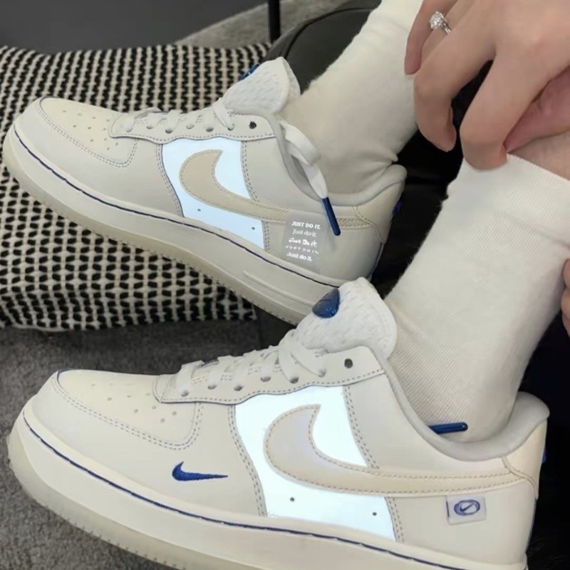 Zh240227 Leite Branco Azul Refletivo N8866k Sapatos De Tábua Casual De Gancho Duplo Fb1839-111 Brancos Femininos 2024 Novos De Verão Casuais Masculinos
