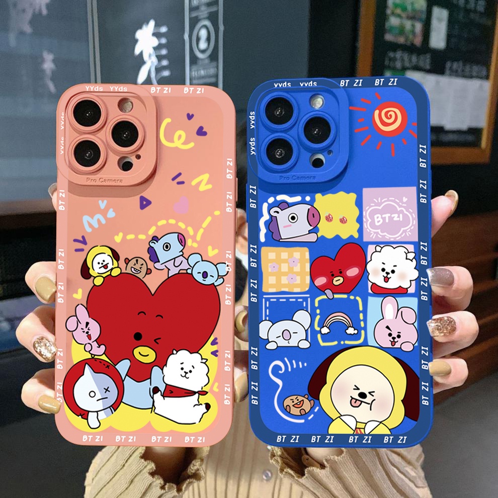Para Xiaomi Redmi Nota 11 Pro 5G 11S 10 4G 10S 10C 9C A1 Fofo BTS BT21 Capa Quadrada De Desenho Animado Protetora De Linho Completo