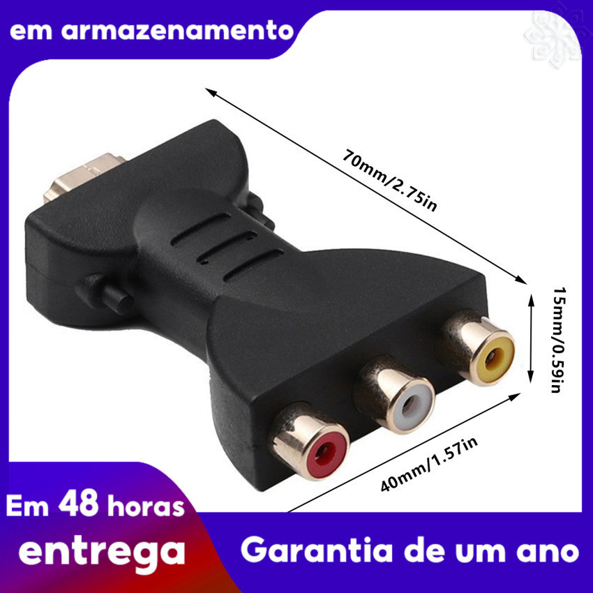 HDMI Macho Para 3 RCA Fêmea Conversor De Adaptador De Áudio De Vídeo Composto AV TV PC