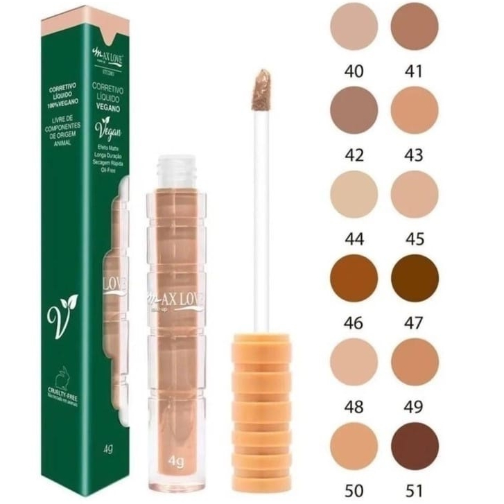 Corretivo Facial Líquido 100% VEGANO Efeito Matte Longa Duração Secagem Rápida Oil Free Maquiagem - Max Love