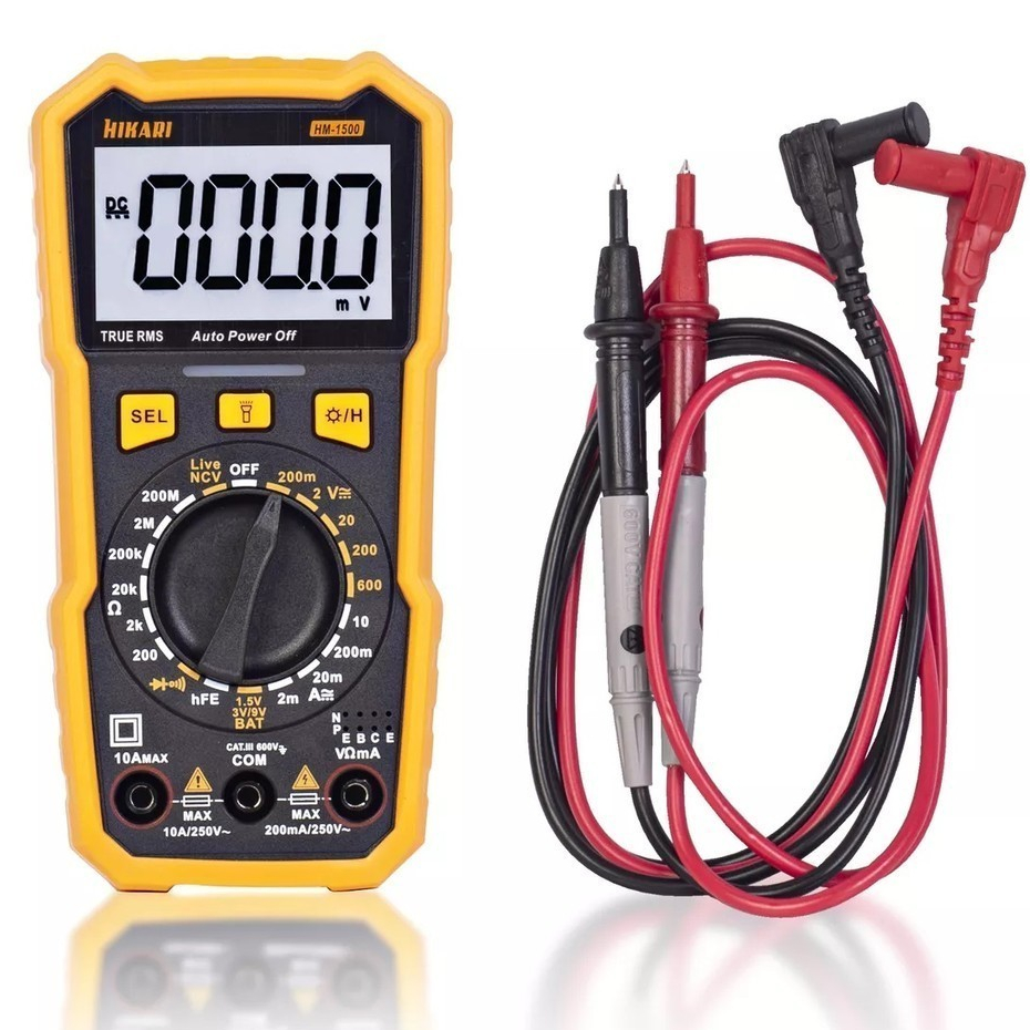 Multímetro Digital Hikari HM-1500 True RMS, NCV, hFE AC/DC 600V Emborrachado