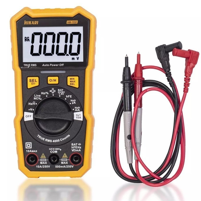 Multímetro Digital Hikari HM-1550 True RMS, Capacitância, NCV, hFE AC/DC 600V Emborrachado