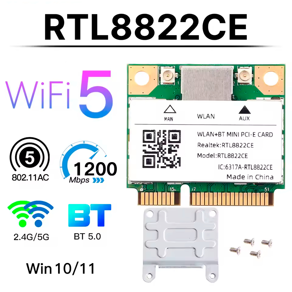 Placa de Rede WIFI + Bluetooth 5 AC1200 5G Dual Band Wireless mPCI-e Mini PCI-E Express PC Notebook
