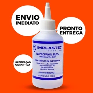 Álcool Isopropílico Implastec 110ml Com Bico Aplicador* 99,8% Isopropanol PCI, Limpeza Eletrônica, Placas e Circuitos