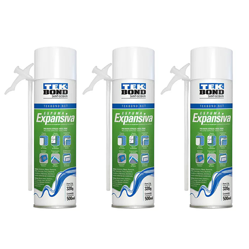 Kit Espuma Expansiva Tekbond Poliuretano 500ml Preenche Espaços Uso Geral 3 / 6 Unidades