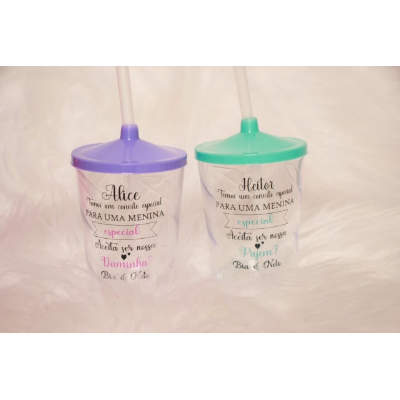 kit com 5 und de copo convite / lembrança para dama e pajem personalizado