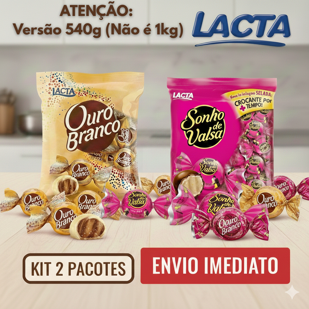 Kit Bombom Sonho de Valsa + Ouro Branco 540g Cada | Chocolate Lacta Original | Pacote 540g Promoção