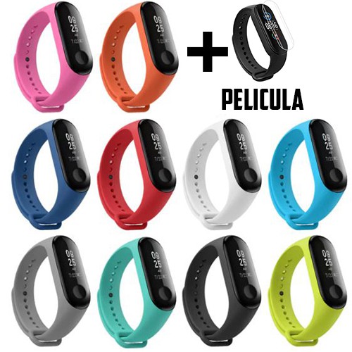 Pulseira miband 4 e 3 + pelicula gel promocao pulseira de silicone para mi band 4 e 3