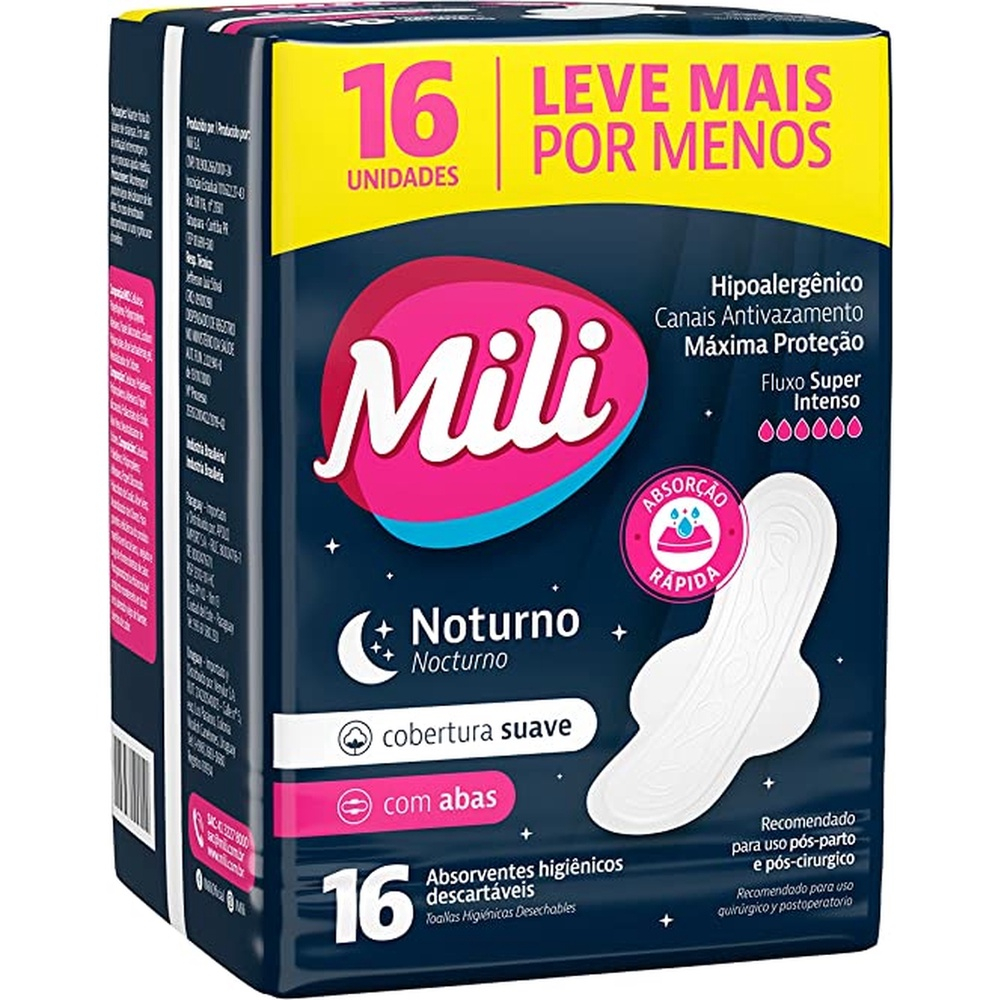 ABSORVENTE MILI NOTURNO SUAVE C/ABAS PACOTE DE 16 UNIDADES