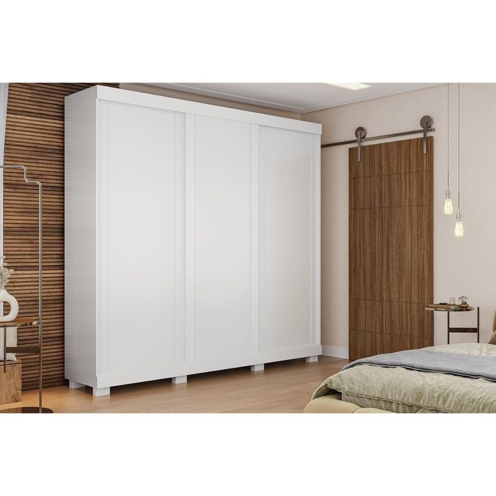 Guarda Roupa Casal 3 Portas de Correr e 4 Gavetas Zara Branco - Acp