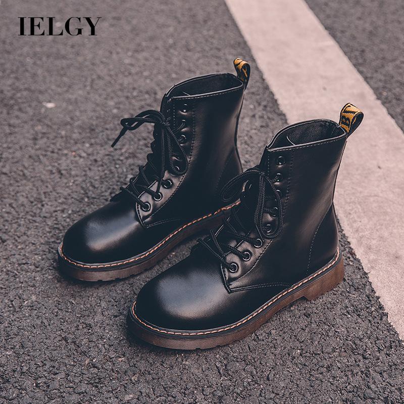 IELGY Botas Martin De Couro Inglês Com Sola Inglesa Renda Frontal