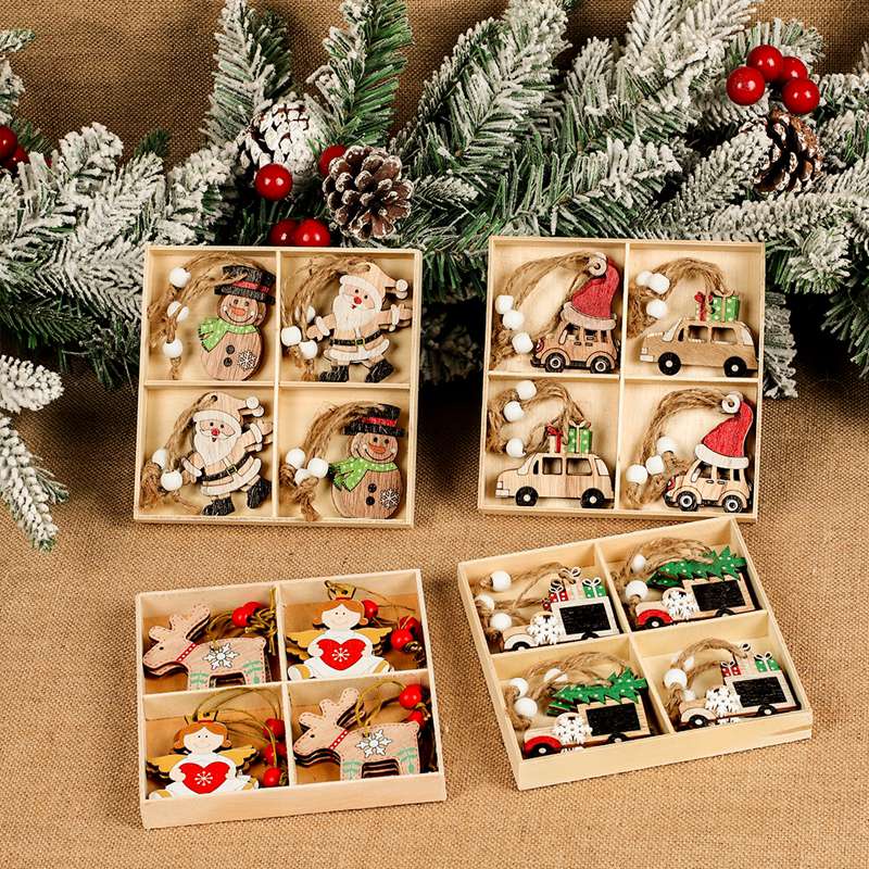 12pcs Pingente De Natal Papai Noel Homem De Neve Carro Alce Pendurado Árvore Decoração Crianças Ano Novo Presente 2024