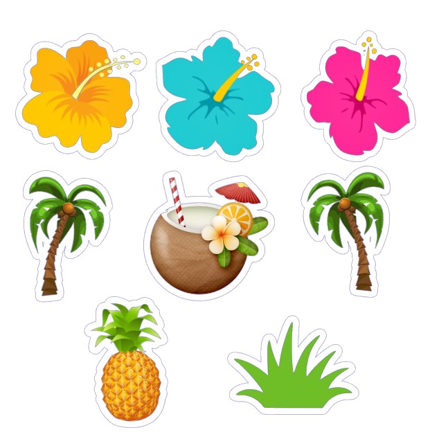 50 Apliques Luau Festa Tropical Toppers, Tags para Tubetes ou Docinhos Doces