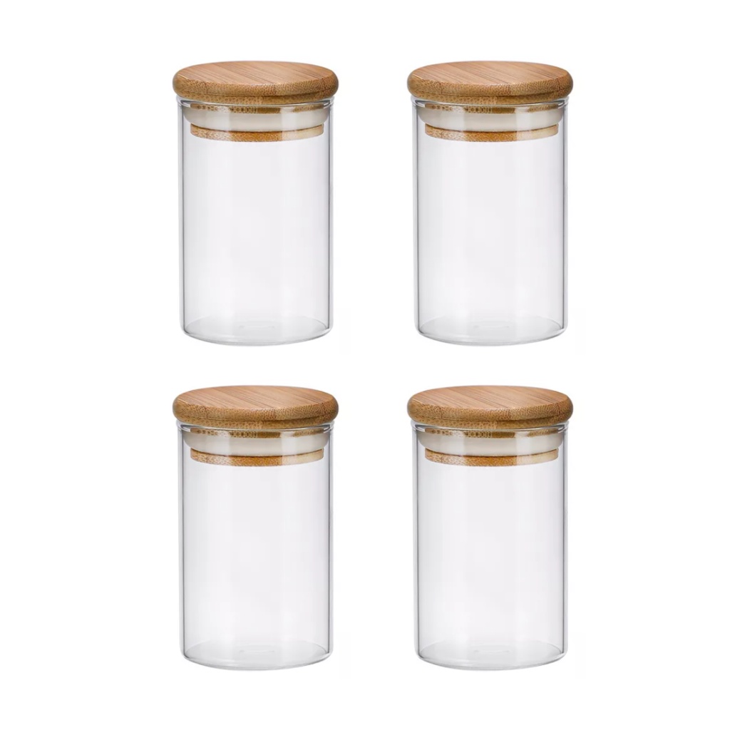 Kit 4 Potes Hermético Vidro Grosso Boro C/tampa Bambu 110ml para Condimentos Temperos