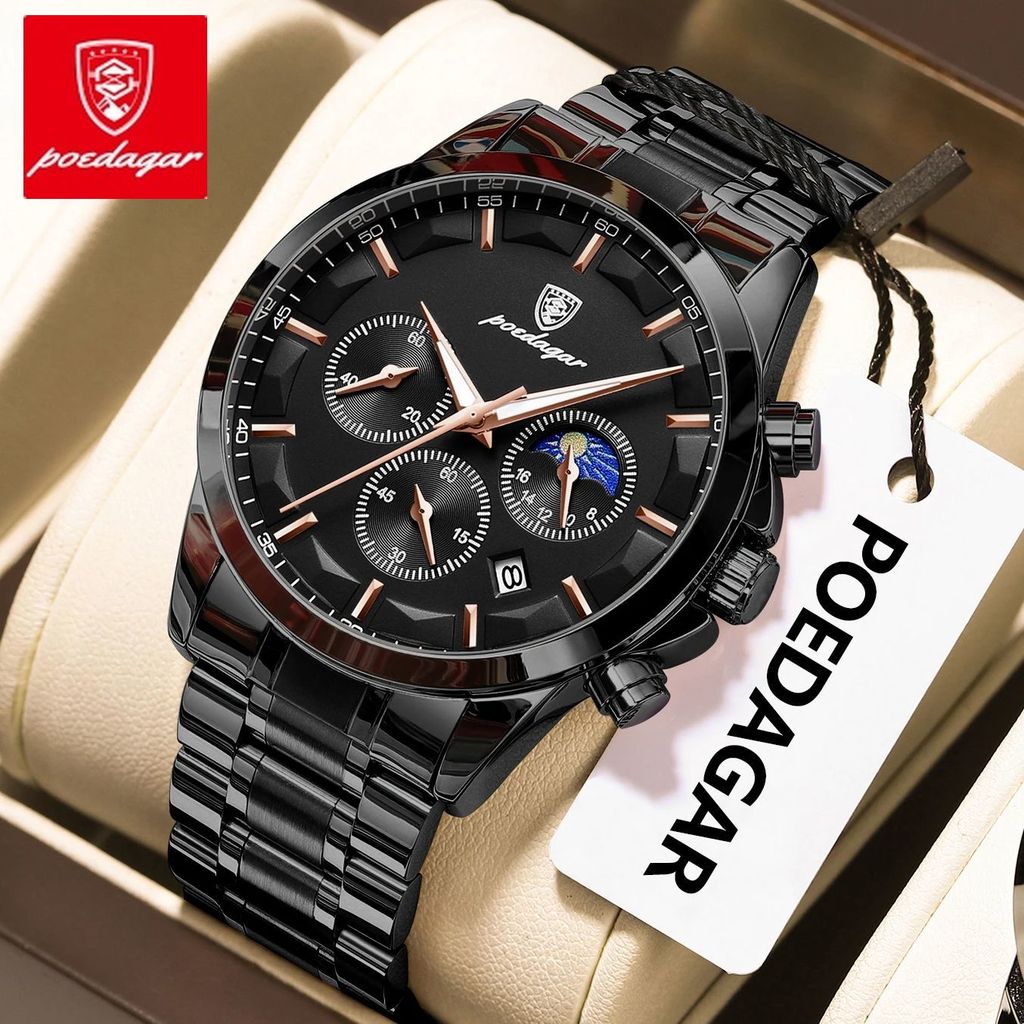 Relógio POEDAGAR , Elegante E Simples À Prova D'água Luminoso Calendário De Aço Inoxidável De Quartzo Masculino