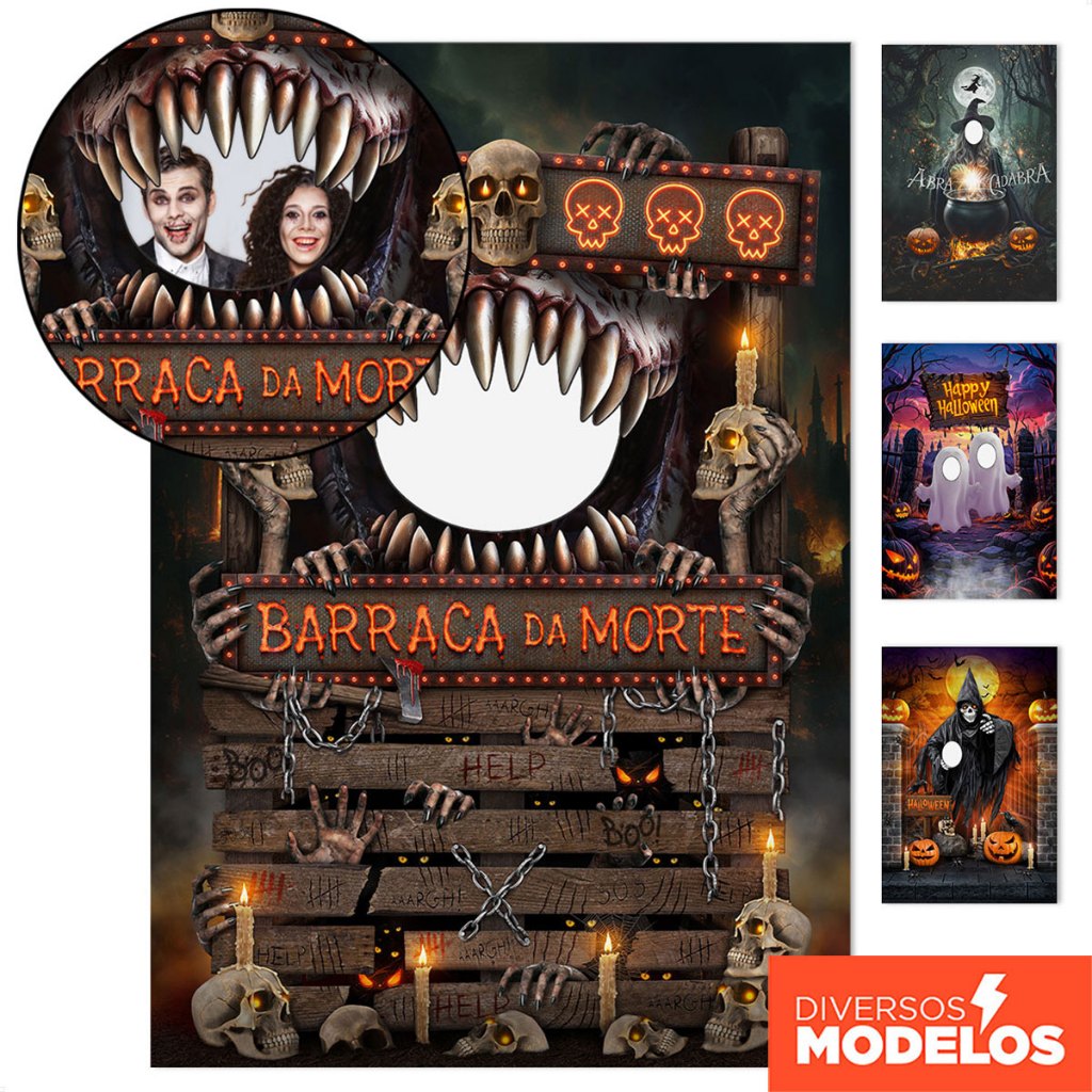Painel de Festa Decoração Halloween Vazado Interativo Retangular Lateral Sublimado Tecido 1,50x2,20m