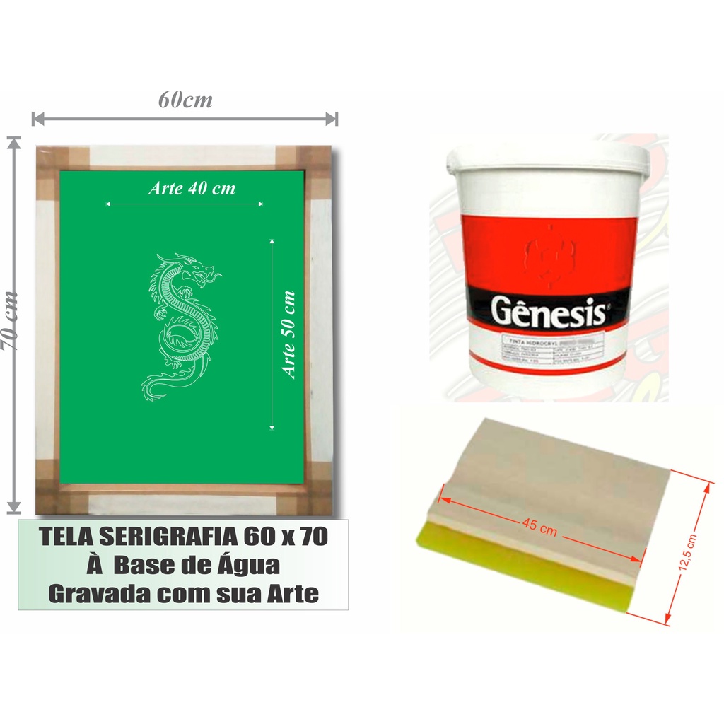 Kit Tela de Serigrafia 60x70 Gravada com sua Arte + Tinta à base de água 900 ml + Rodo + Espátula de brinde