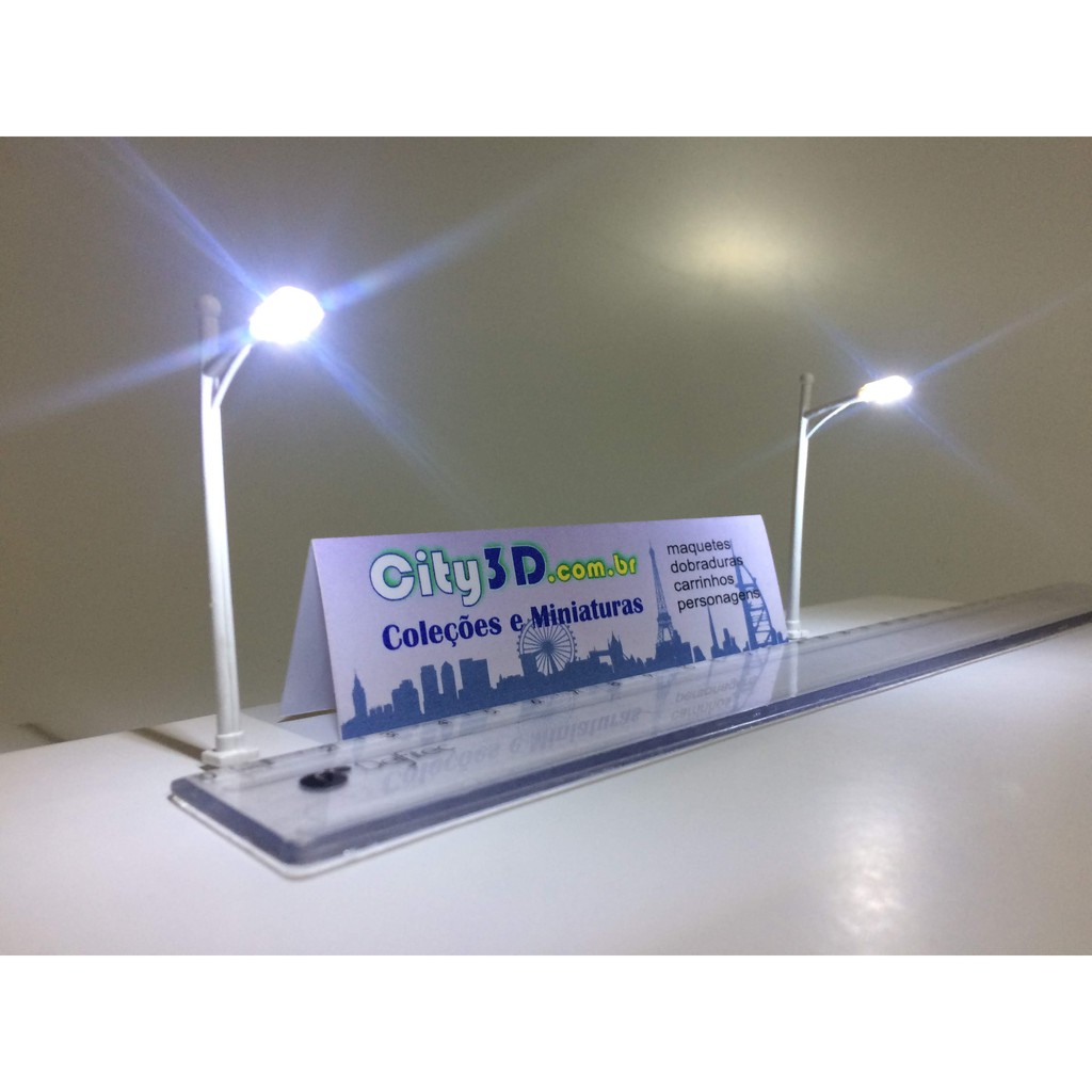 10 Postes Branco H=6,5cm C/ Led 3volts Maquete Postinho 1:87 a 1:150