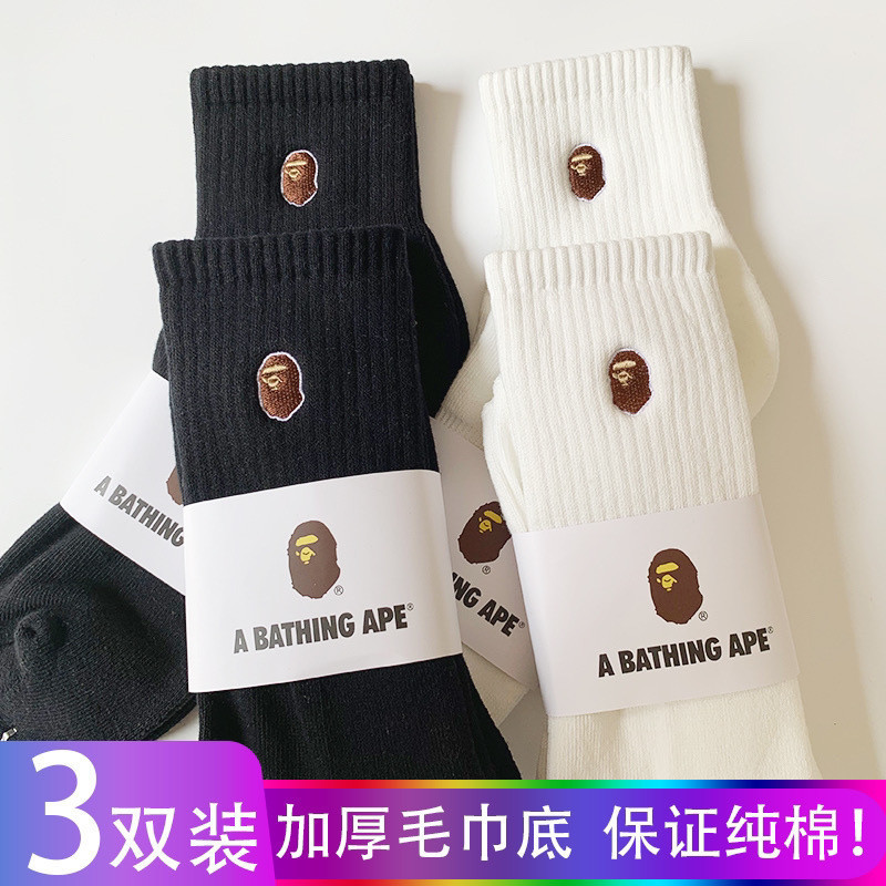 Bape Ape cabeça bordado japonês Street Wear meias das mulheres dos homens meados de tubo puro algodão toalha inferior esportes basquete tubo alto
