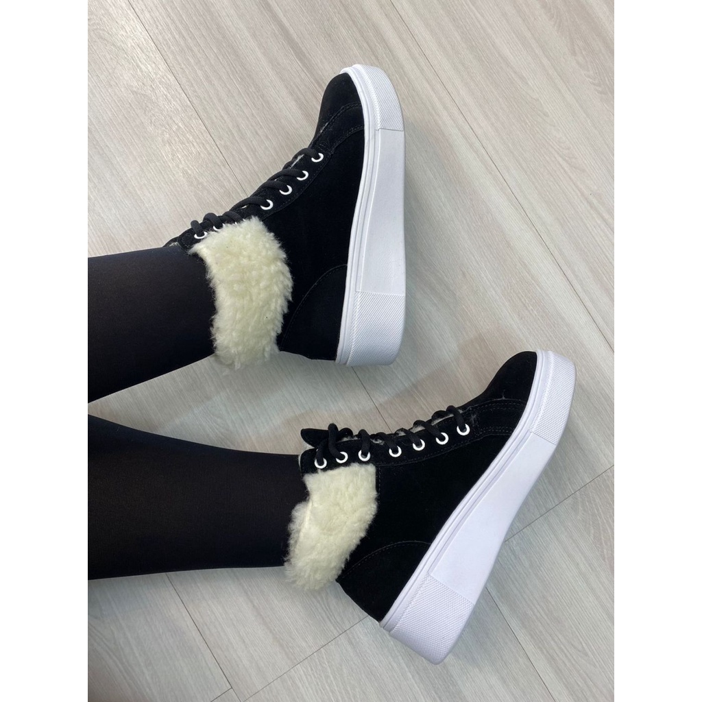 Tênis botinha apeluciada, bota cano curto com pelo para o inverno toda forrada de pelinho por dentro, bota frio, bota quente