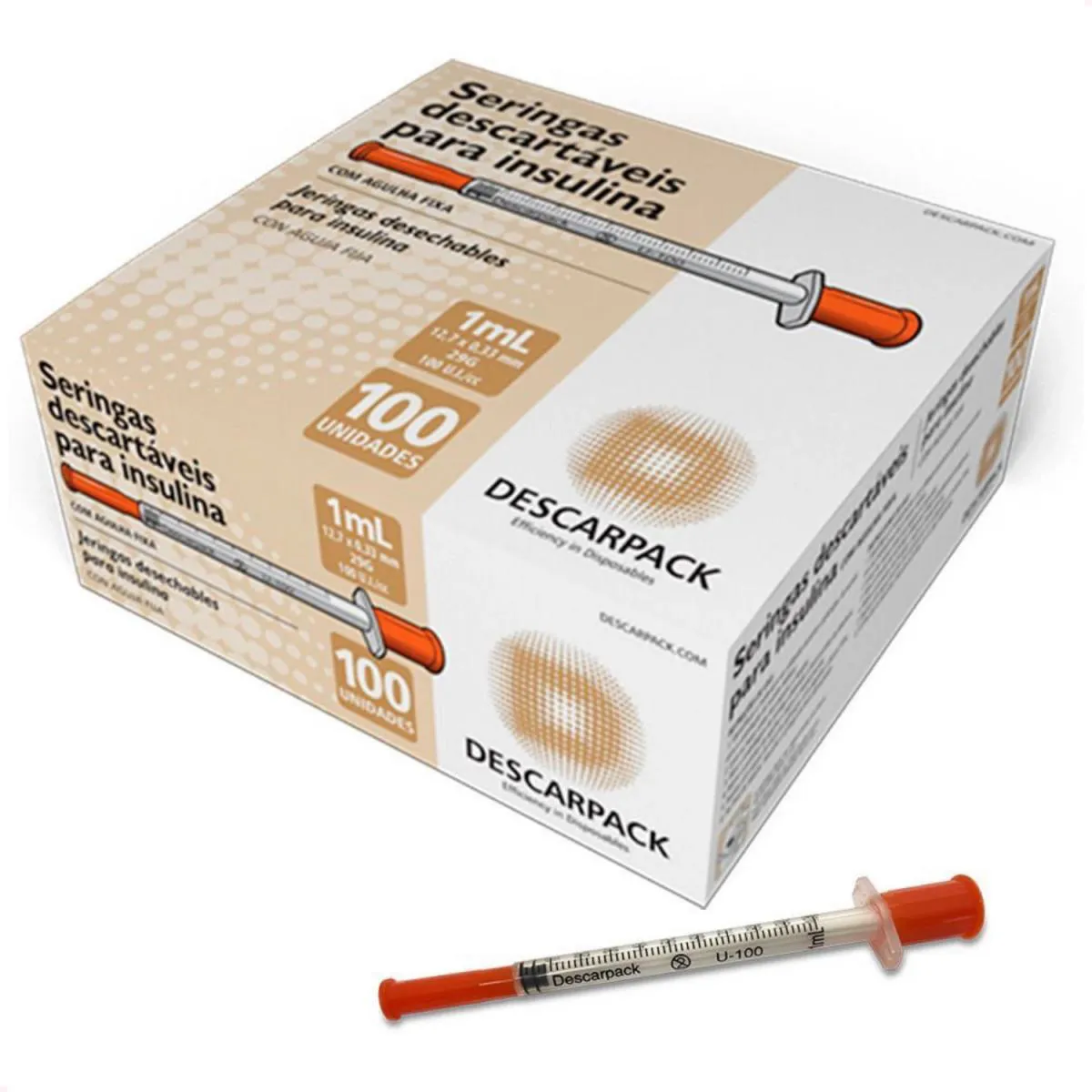 Seringa Insulina/Botox 1ml 8,0x0,30 Ultrafina Descarpack Caixa C/100