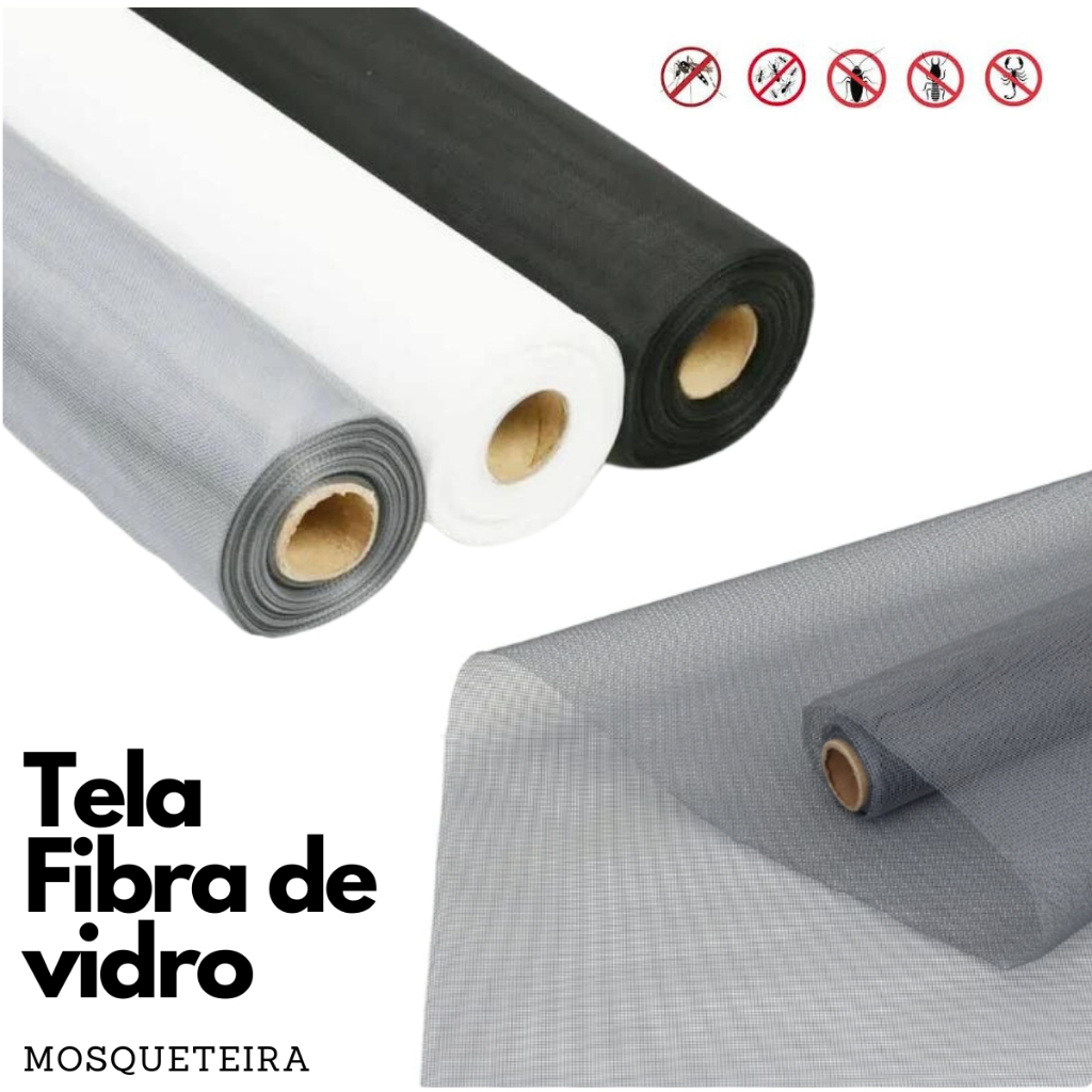 Tela Mosquiteiro Fibra De Vidro Cinza Branco Preto 1,50 X 1 Metro