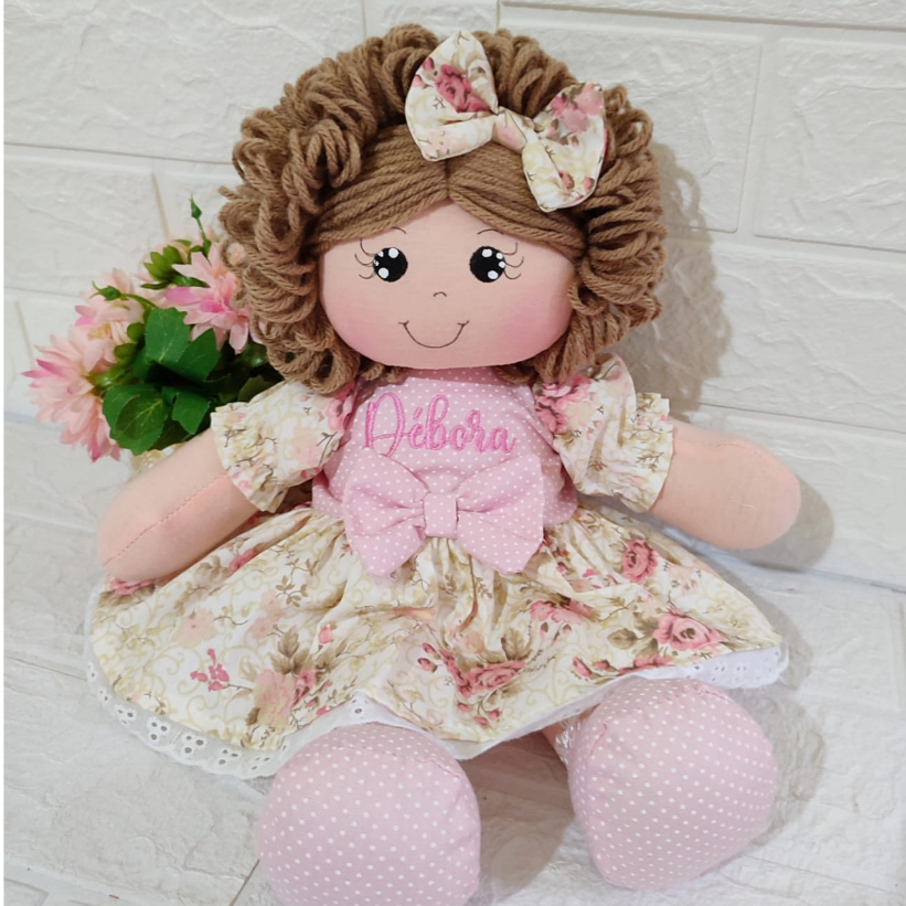 Boneca de pano Artesanal com 30cm para Brincar e Decorar, Presente, Aniversário, Bordamos o nome da criança