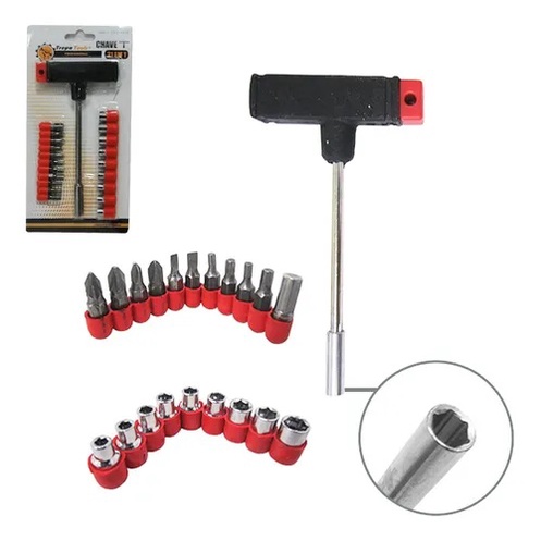 Jogo Kit Chave T Com 21 Soquetes Cachimbos Bits Ponteiras