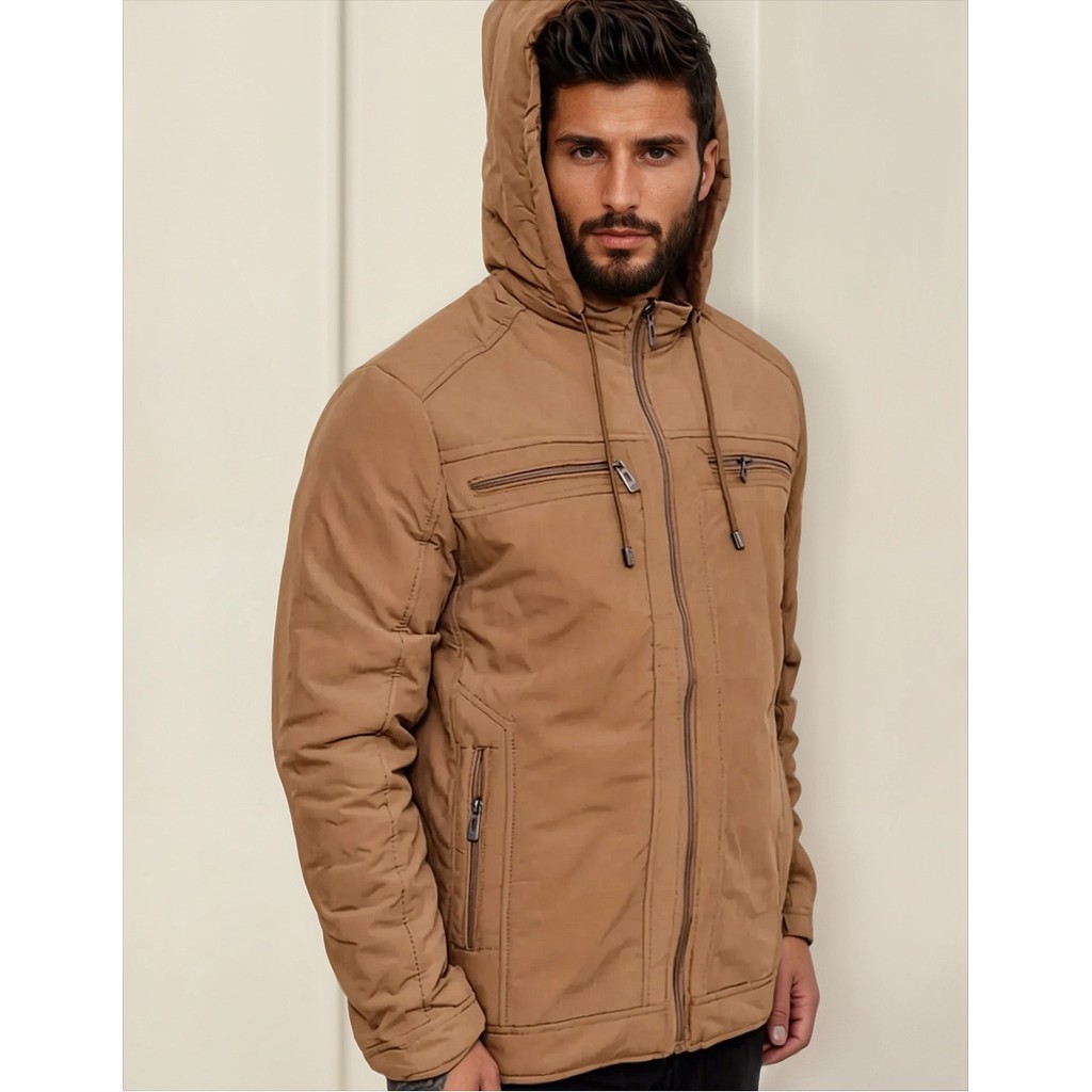 jaqueta masculina de sarja toda forrada por dentro de pelinhos com capuz removível 2025