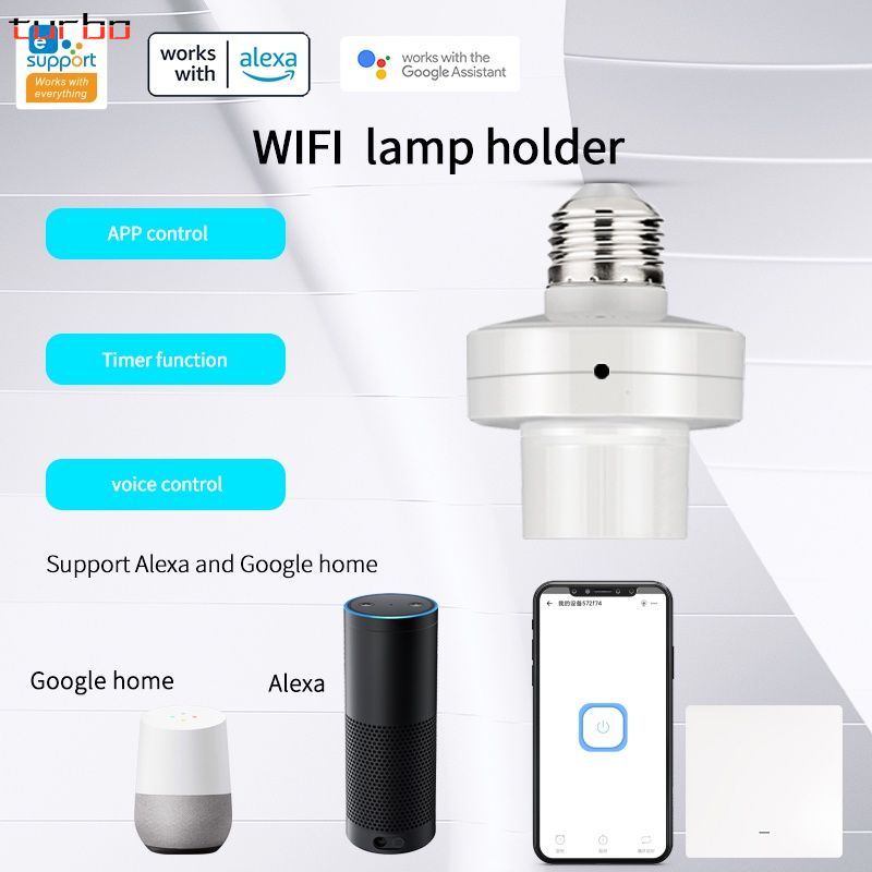 Soquete Bocal Lâmpada inteligente wifi, suporte para lâmpada led, 110v-220v,compatível com google home, alex turbo
