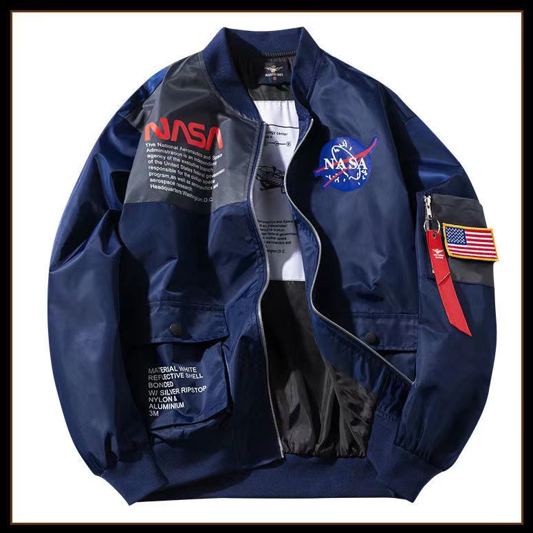 NASA co-nome ma1 jaqueta de piloto de astronauta masculino jaqueta de casal casaco solto de beisebol da força aérea jaqueta de algodão