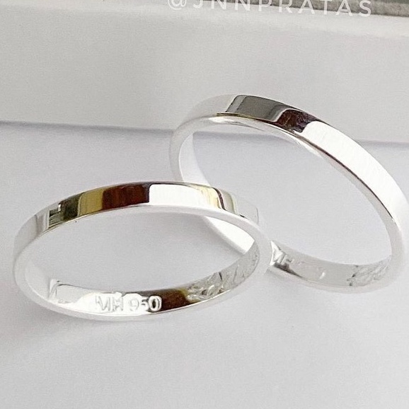 Par de aliança anel prata 2mm 950 925 fininha tradicional namoro compromisso com anel solitario