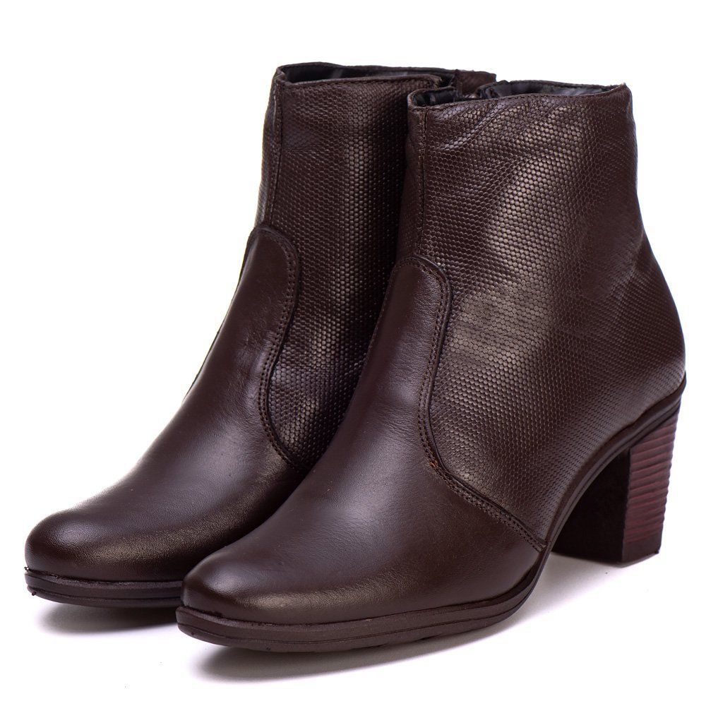 Bota feminina Couro Legítimo Cano Curto Salto Baixo