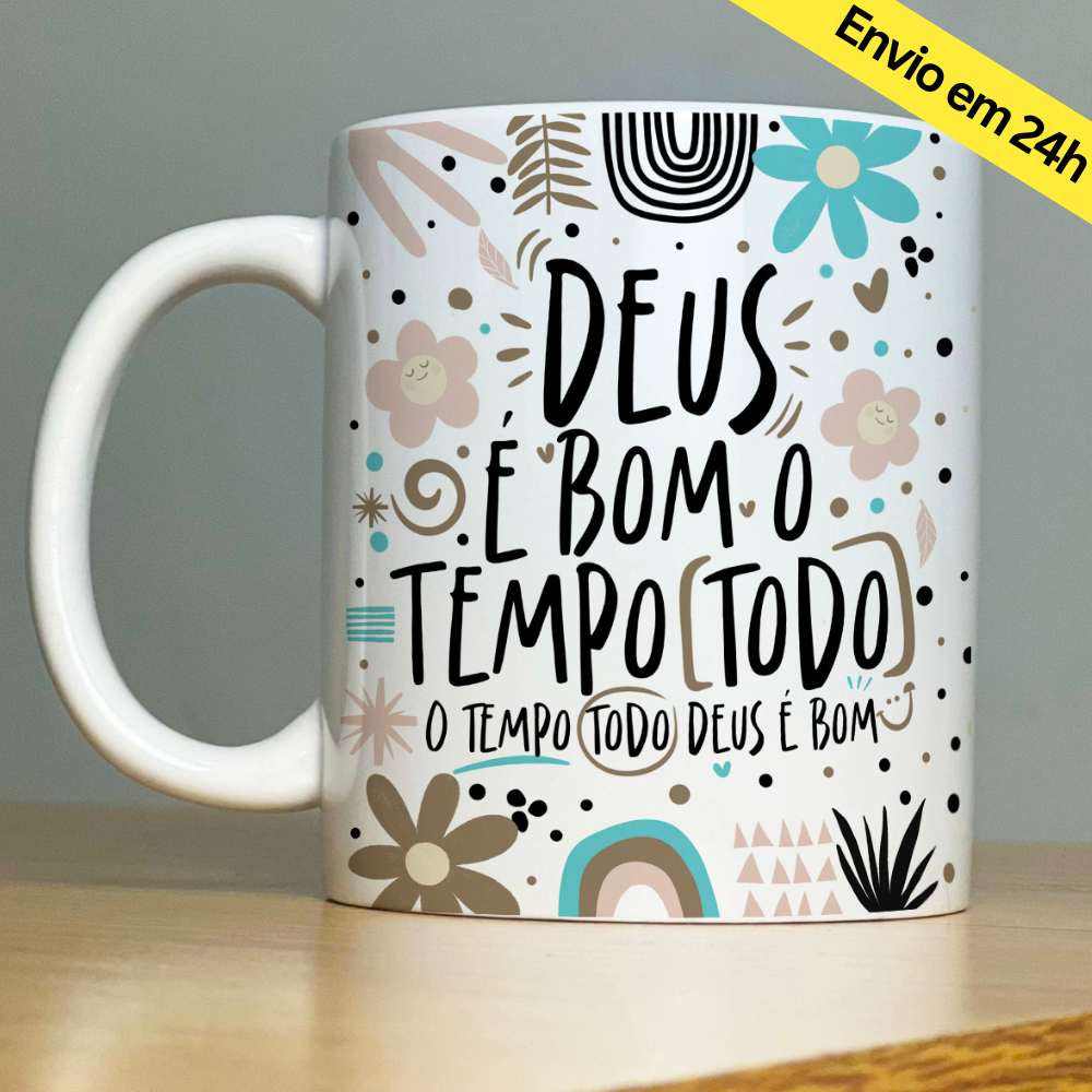 Caneca Personalizada - Deus é Bom - Xícara de Porcelana 325 ml - Frases Motivacionais